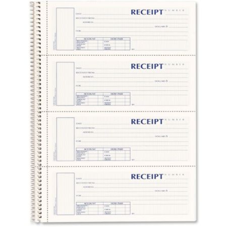 Adams Money And Rent Receipt Book 2 Part Carbonless 7 5 8 X 11 Spiral Bound 200 Sets Per Book 4 Receipts Per Page Sc1182
