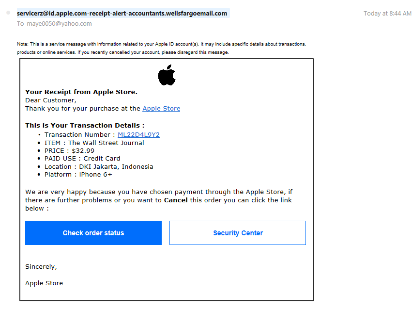 Iphone Scam Email Apple Purchase Successfully Payment