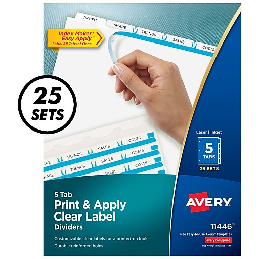 Its easy to create custom printed dividers in just minutes with avery index maker dividers. Ive always liked avery labels dividers but these easy to print out then apply label strips just make the things perfect. Avery print apply clear label dividers with index maker easy apply labels for laser and inkjet printers 5 tabs. Easily apply multiple labels in seconds with easy apply strips.