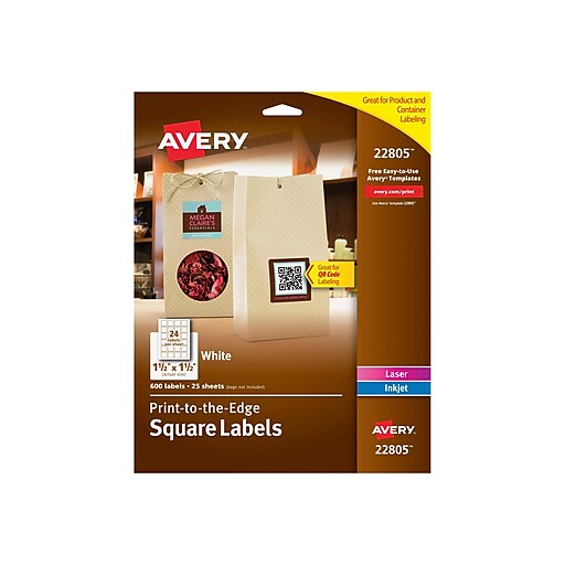 Averysupregsup square labels are print to the edge capable for full colour backgrounds for your brand logo product name and more. Create brand recognition with the avery 22805 easy peel 1 1 2 x 1 12 white square print to the edge labels. My only complaint was the printing using the template from avery. Brand your products with a unique square label to grow your business.