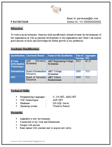 B Tech Fresher Resume Examples Free Resume Samples Resume