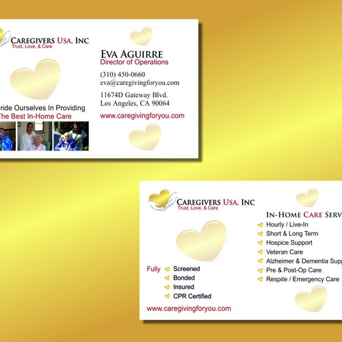 Business card templates make a lasting first impression. This is a fully customizable business card and available on several paper types for your needs. Caregivers are people who provide support to those who are ill mentally impaired or otherwise unable to care for themselves. Supplying quality business cards and professional online business card management services to large and small companies since the year 2000.