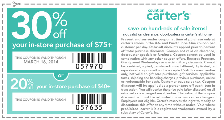 Carters Store Coupons Printable