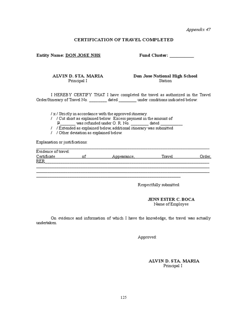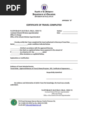 Cert Of Travel Completed Deped Doc Document