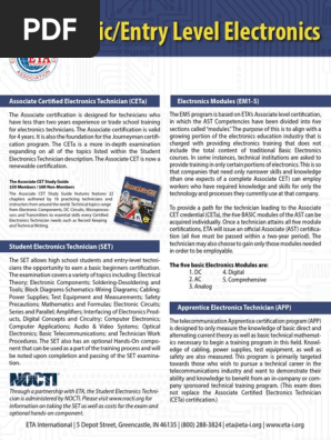 Cet electronics certification. Iscet the international society of certified electronics technicians is a nonprofit association of certified technicians chartered in 1965 that assists students and experienced techs by offering training education and certification exams that will help you attain your personal and professional goals. Certified electronics technician education and training requirements. The electronics modules program is based on etas associate level certification and is divided into five modules. Number systems and digital electronics.