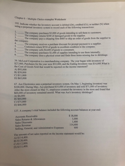 Solved Chapter 6 Multiple Choice Examples Worksheetr 195
