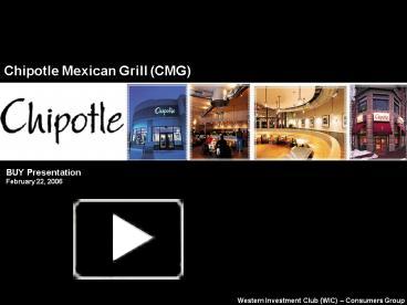 Chipotle mexican grill cmg is the property of its rightful owner. Customers affiliates powerpoint tutorial video tour infographics. Barriers to entry economies of scale customer skepticism location regulatory obstacles however anyone can start up their own restaurant threat of new entrants bargaining power of suppliers bargaining power of buyers threat of substitute products rivalry among competing firms. A presentation by group 1 42215 marketing 200 professor kwak background information founded by steve ells in denver co.