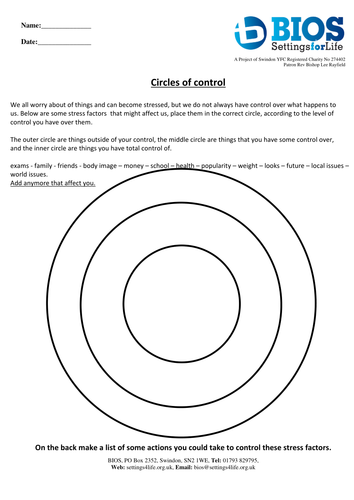 Circles Of Control Worksheet