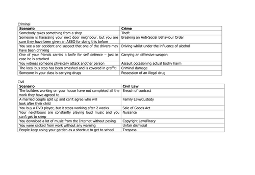 You may print out these. Punishment or compensation 4a types of offences 4b sentences and remedies 4c and types of civil dispute 4d. Civil and criminal law. Displaying top 8 worksheets found for civil and criminal law.