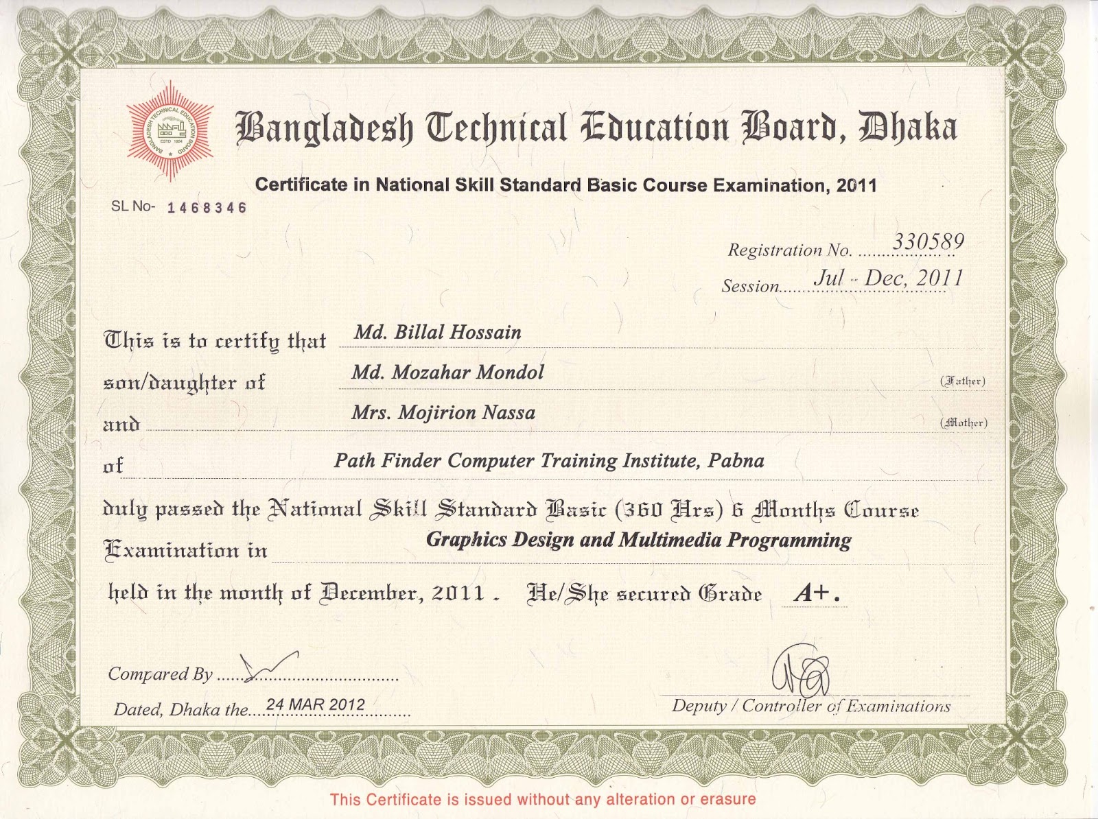 Md Billal Hossain Computer Certificate Md Billal Hossain