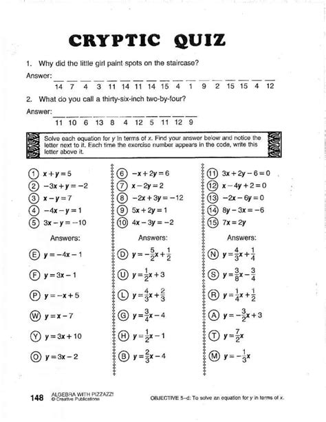 Cryptic Quiz Math Worksheet Answers Page 148