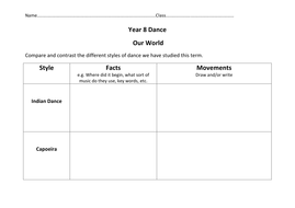 Dance Worksheets For Middle School