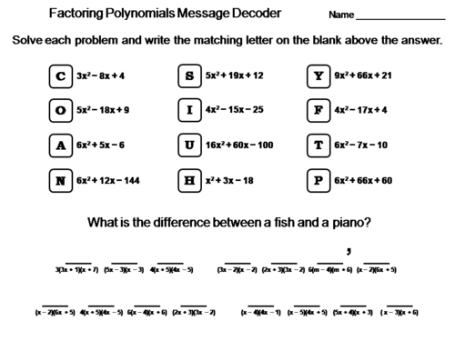 Factoring Puzzle Activities Project For 9th 11th Grade