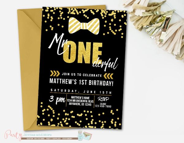 Free mr onederful invitation template. Designing your own invitation for your event has never been as easy as it is in todays times. 25 off with code zmlk25thanks. This personalized black and gold mr onederful invitation will be the perfect touch for your childs 1st birthday party. Click here to browse the available invitations and edit it online with drevio canvas.