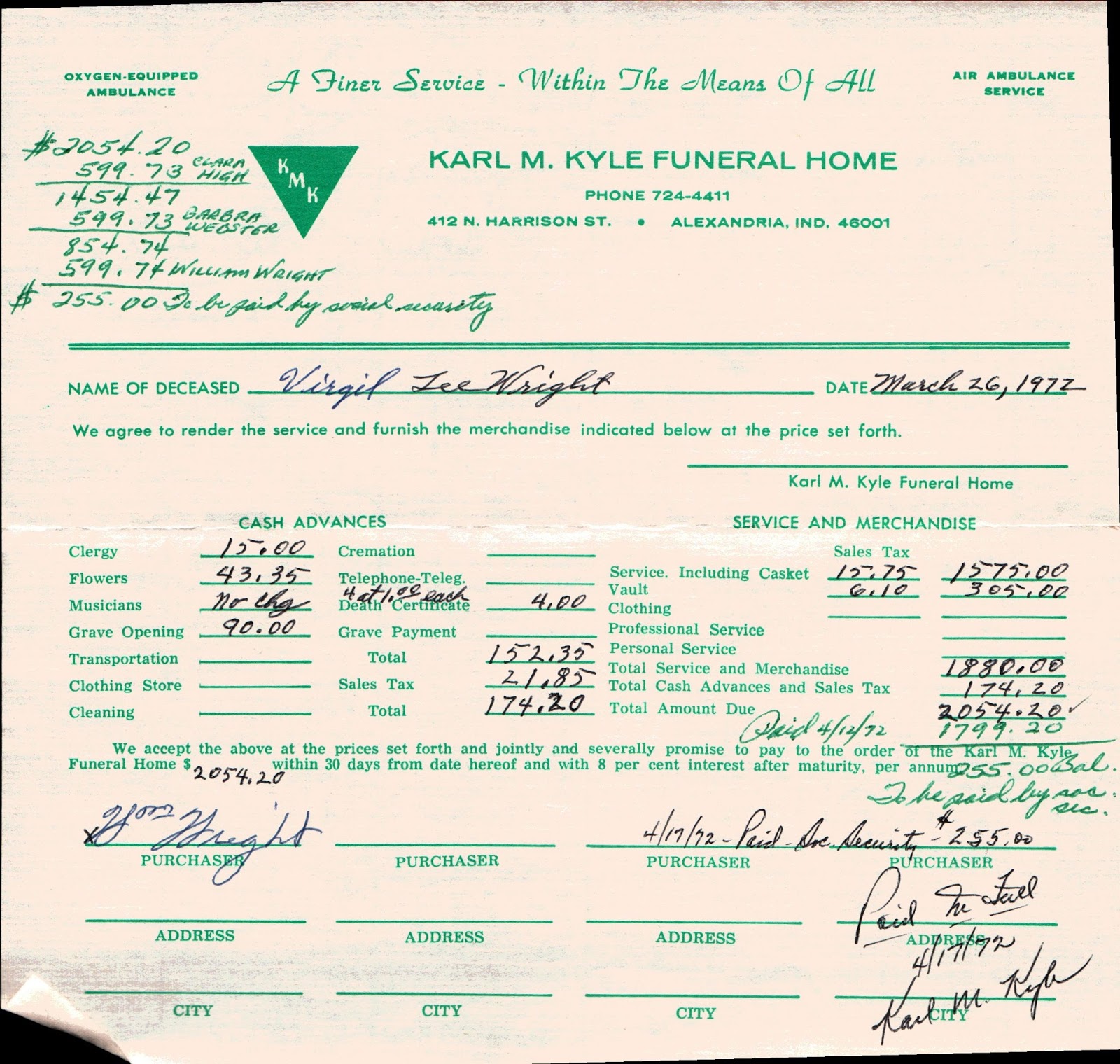 Funeral Home Receipt