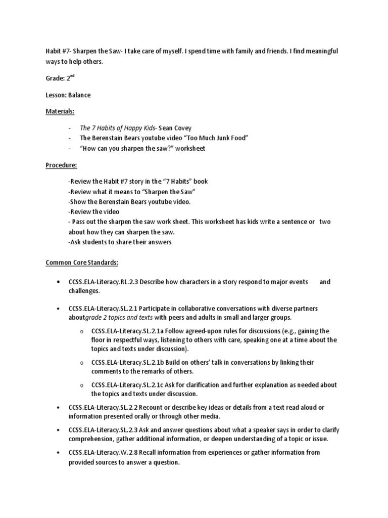 Habit 7 Sharpen The Saw Info Sheet Habits Seven Habits