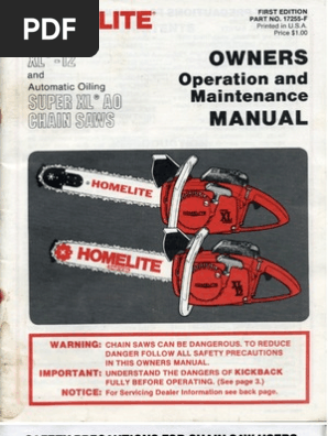Homelite Xl Chainsaw Owners Operating Maintenance Manual
