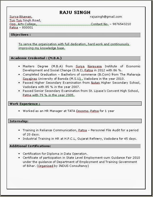 Download Resume Format For Freshers Hr Fresher Hr Resume