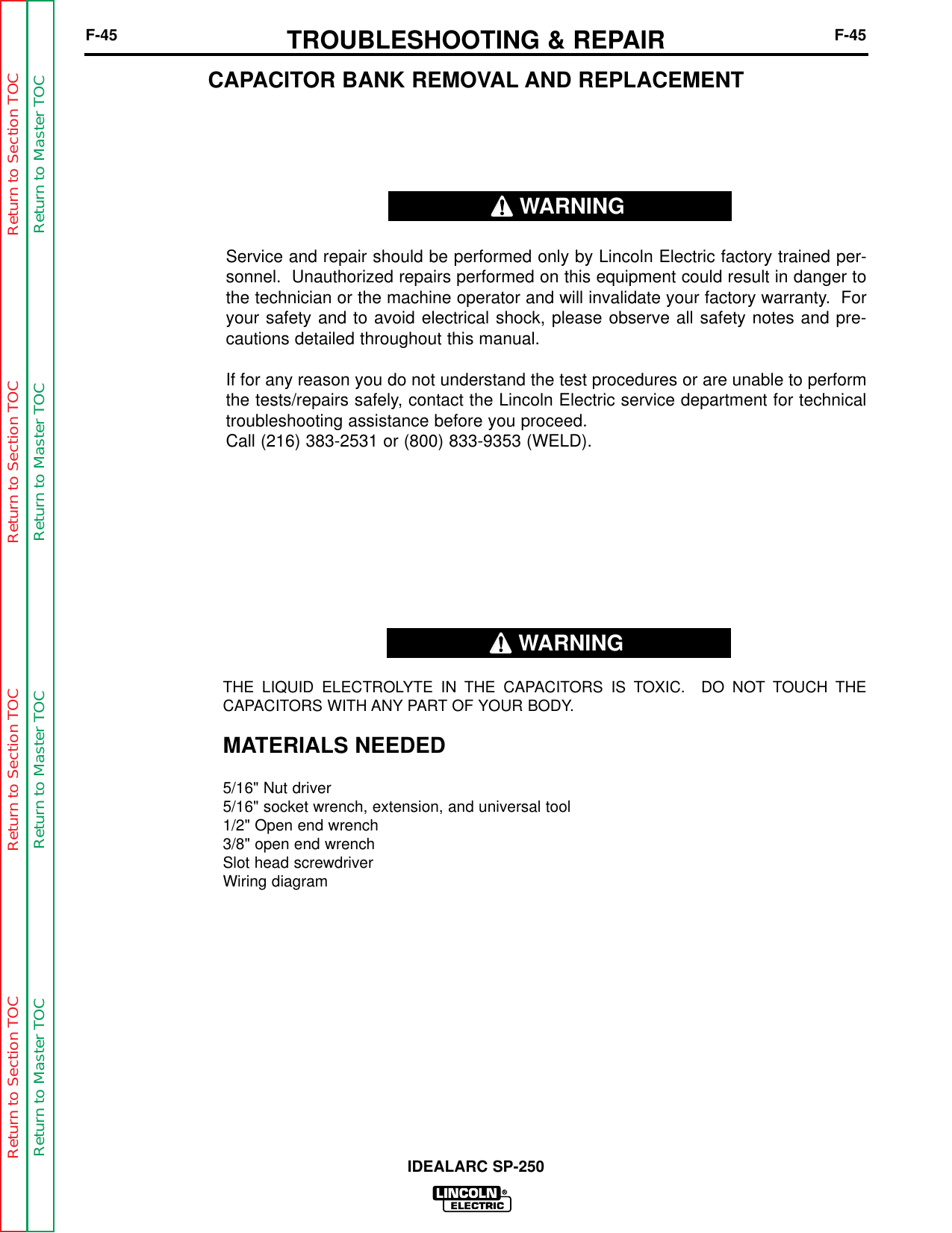 Lincoln Electric Idealarc Sp 250 User S Manual Manualzz Com