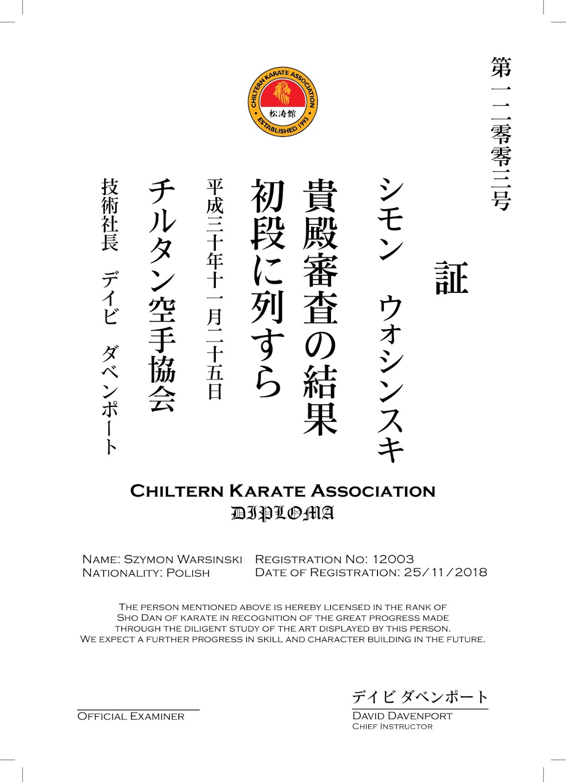Karate Dan Certificate