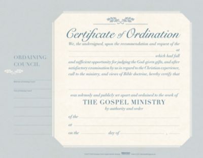 The credential of ministrycertificate of ordination and everything else is included in both the emailed download and the first class mail clergy packs. We ordain in all 50 states. There is a man has been called or prepared by the god for vocational ministry in the office of elder in the local church. What is a certificate of ordination.