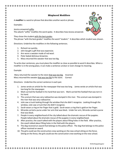 Misplaced Modifiers Worksheets Teaching Resources Tpt