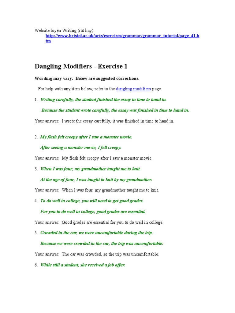 Misplaced And Dangling Modifiers A Exercise 2 Grammar Bytes