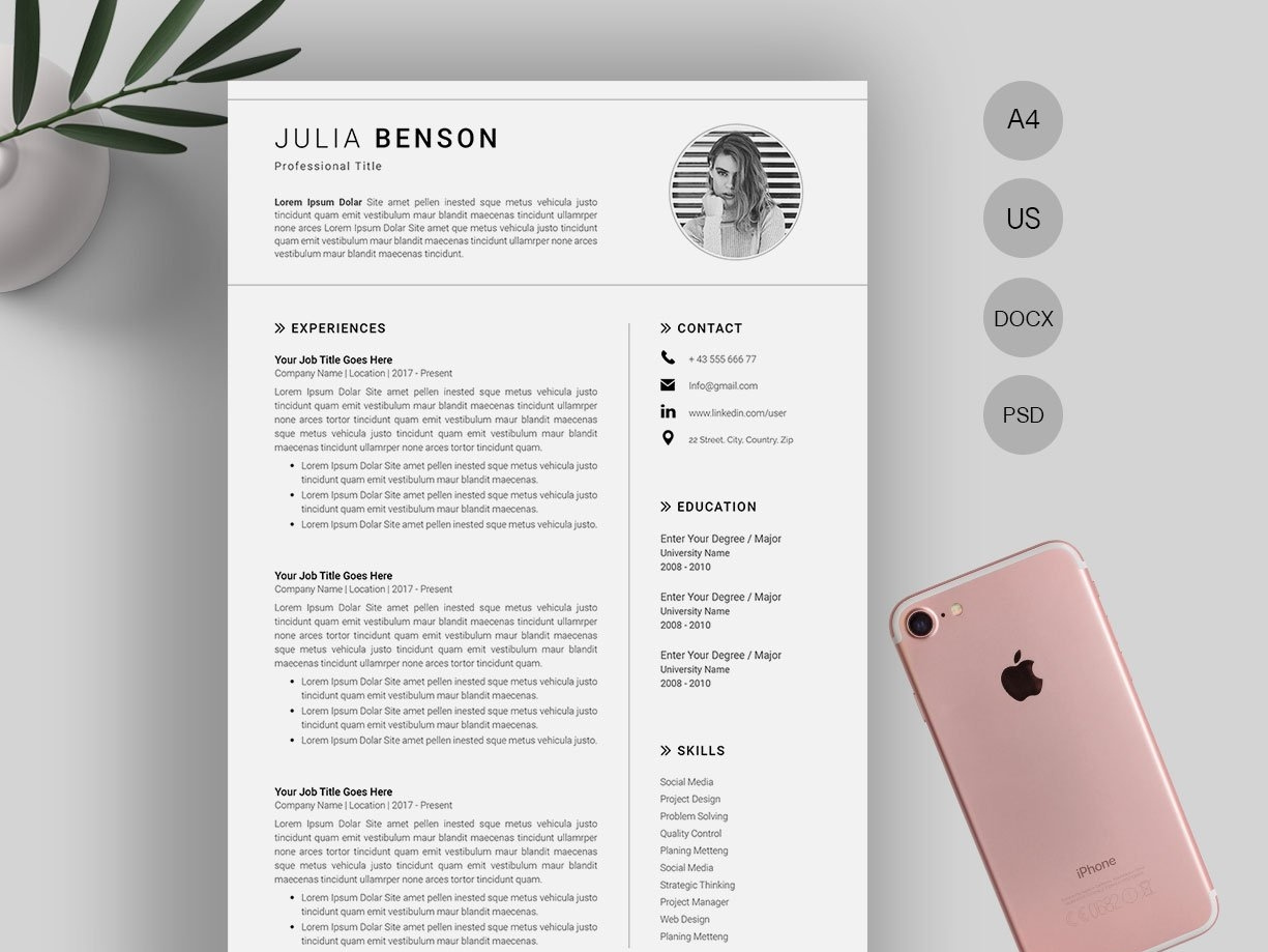 Professional Cv Resume Modern Mockup Mobile Phone Pencil