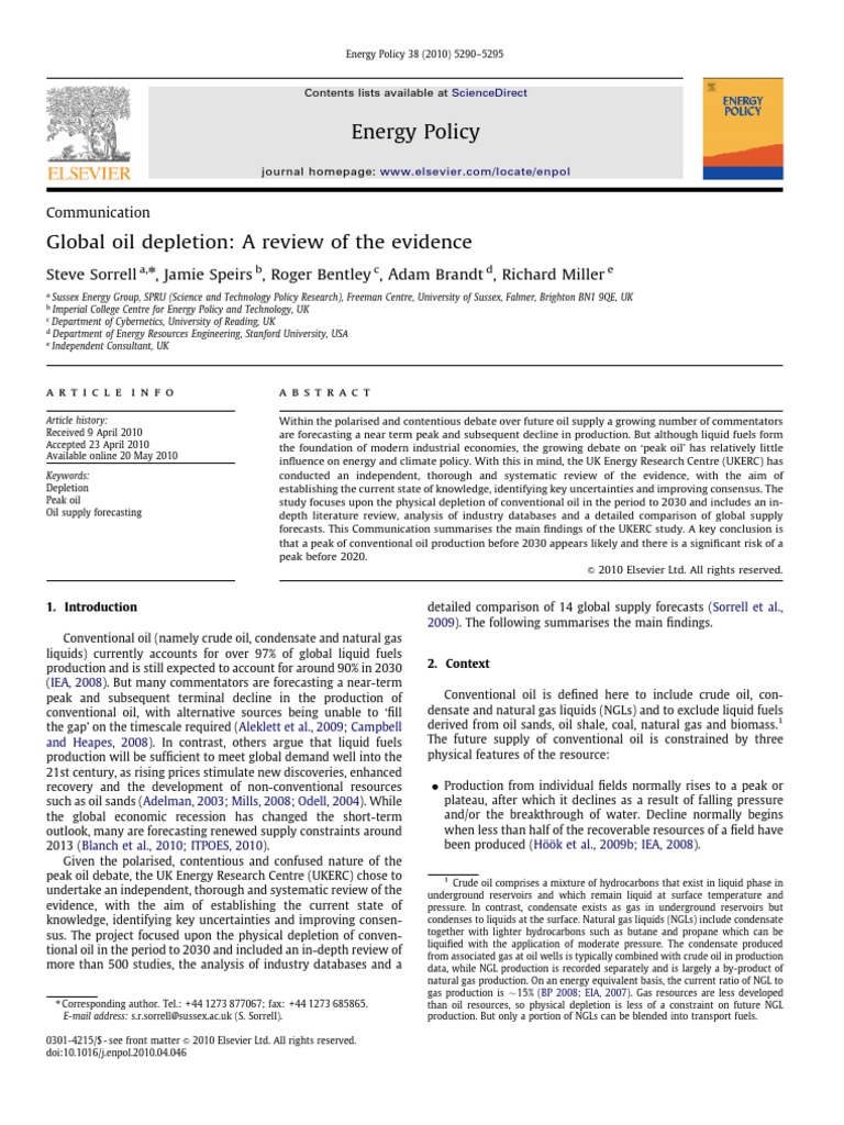 Global Oil Depletion A Review Of The Evidence Sorrell 2010