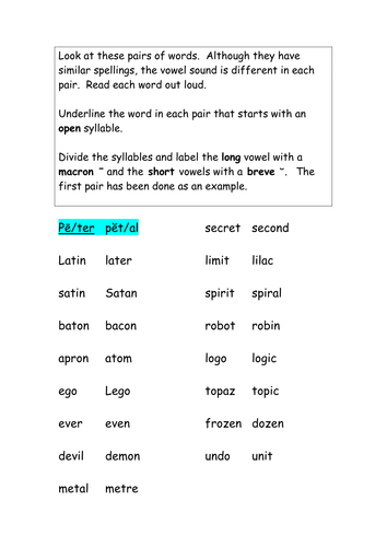 Open Syllables Lesson Plans Worksheets Reviewed By Teachers