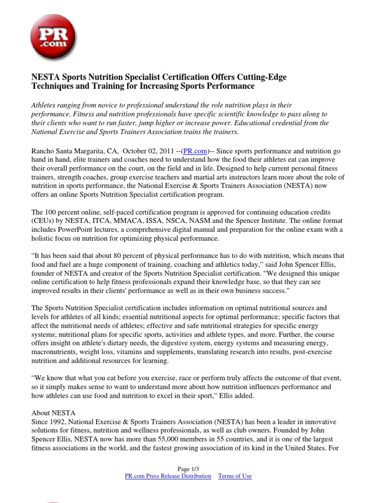 Performance nutrition certification. If youd like to learn moreand save up to 30join the free presale list. Our elite athlete training programs combine training nutrition and physical therapy to ensure optimal performance for the preseason in season and offseason of any sport. Nfl combine and pro day. The course can be completed in 6 12 weeks on average if you are studying 8 10 hours a week.
