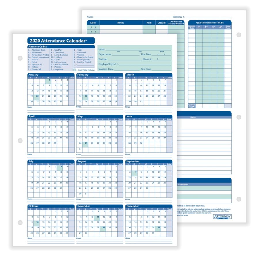 Printable Employee Attendance Tracker 2020