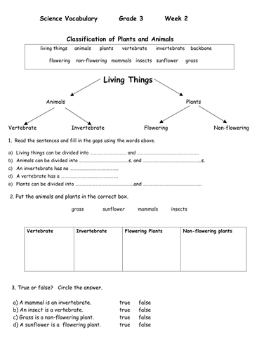 Grouping Of Plants Third Grade Science Worksheets And Study