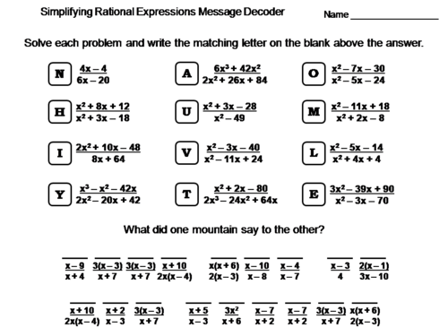 Simplifying Rational Expressions Worksheet Math Message Decoder