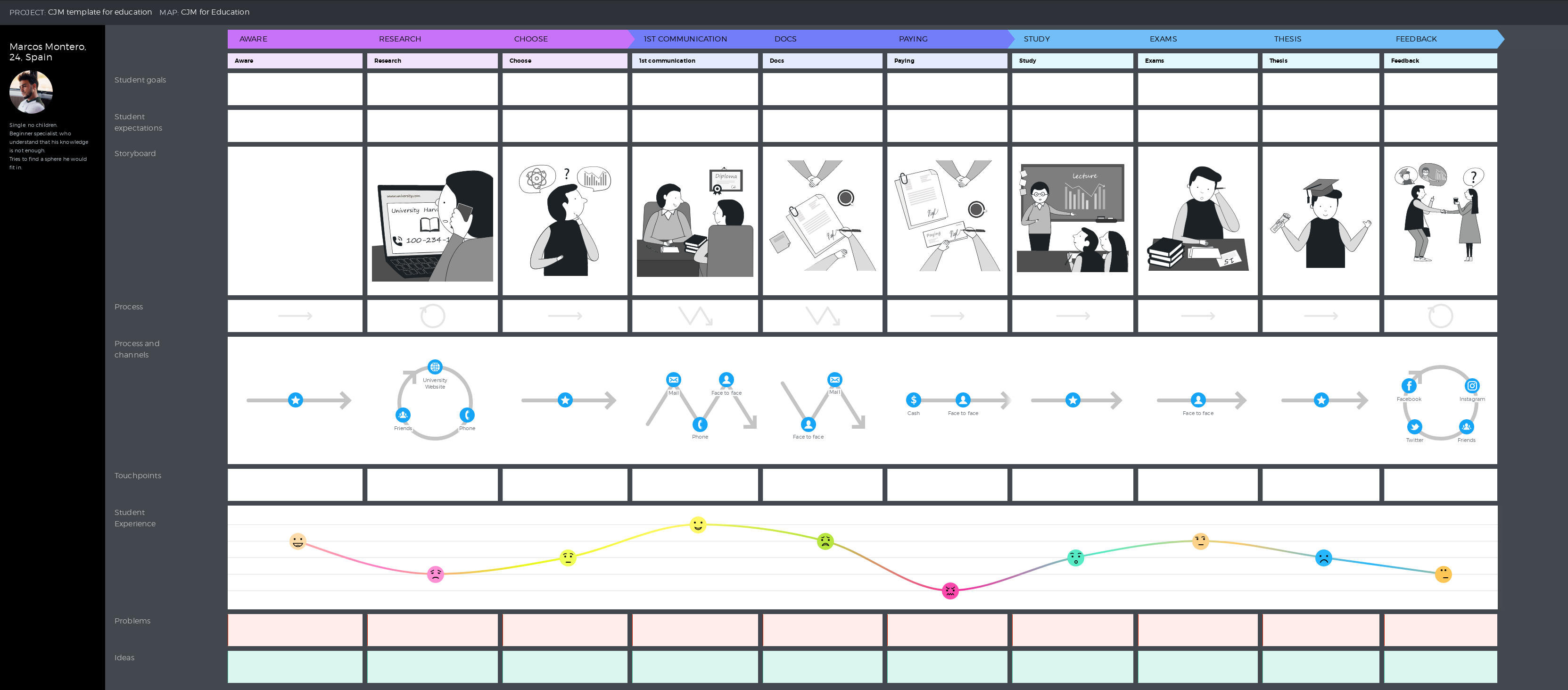 Student journey mapping template. Draw a student journey map and use our education template as a shortcut. Of course the easiest way to create a customer journey map is to find a template that closely matches your needs and customize it to your specific preferences or requirements. Other parts of the journey are optional and depend on your objective. We built this template based on many years of experience in teaching and implementing ux so you can rest assured that youll hit your goal without a doubt.