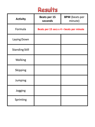 Pulse Rates Worksheet Teacher Made