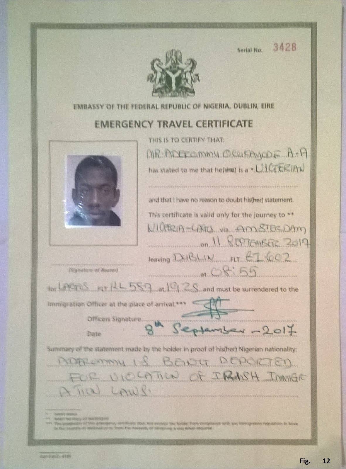 A Nigerian Emergency Travel Certificate Had Been Issued To Him