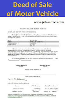 Deed Of Sale Motor Vehicle Format Filesishare Sale Deed