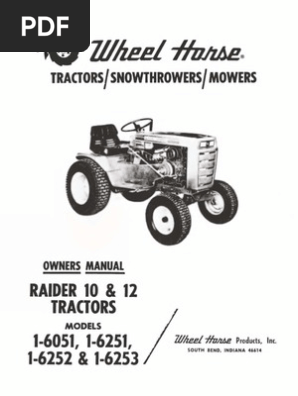 Wheelhorse Raider 10 And Raider 12 Owners Manual For Models