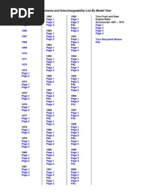Toro Wheelhorse Accessories Interchange 2000 1955 2000