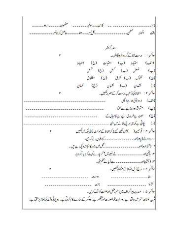 Grade 2 Level Urdu Assessment Exam Paper Comprehension Creative And Grammar Section