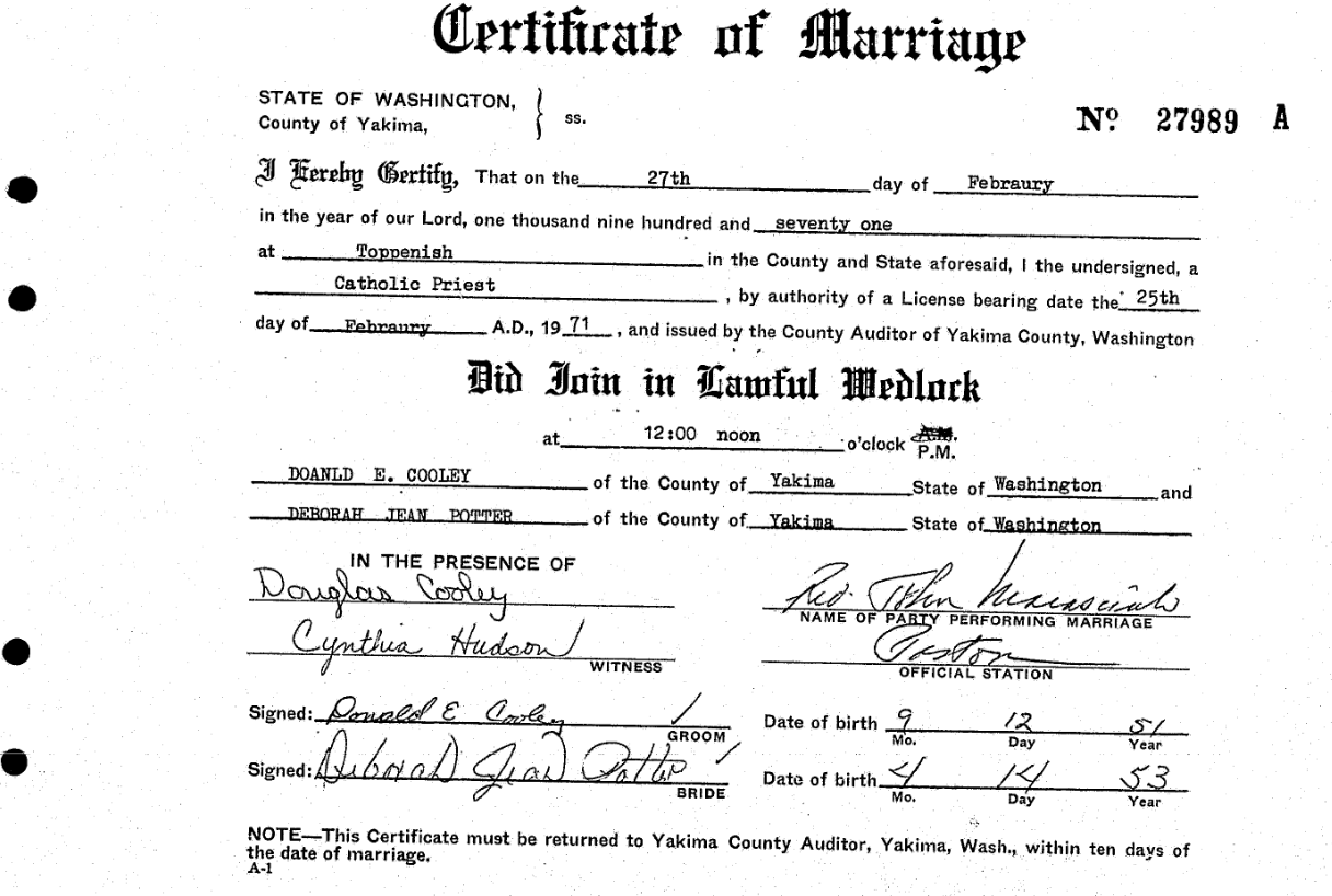 Potter Profiles Potter Cooley Marriage 1971 Toppenish Wa